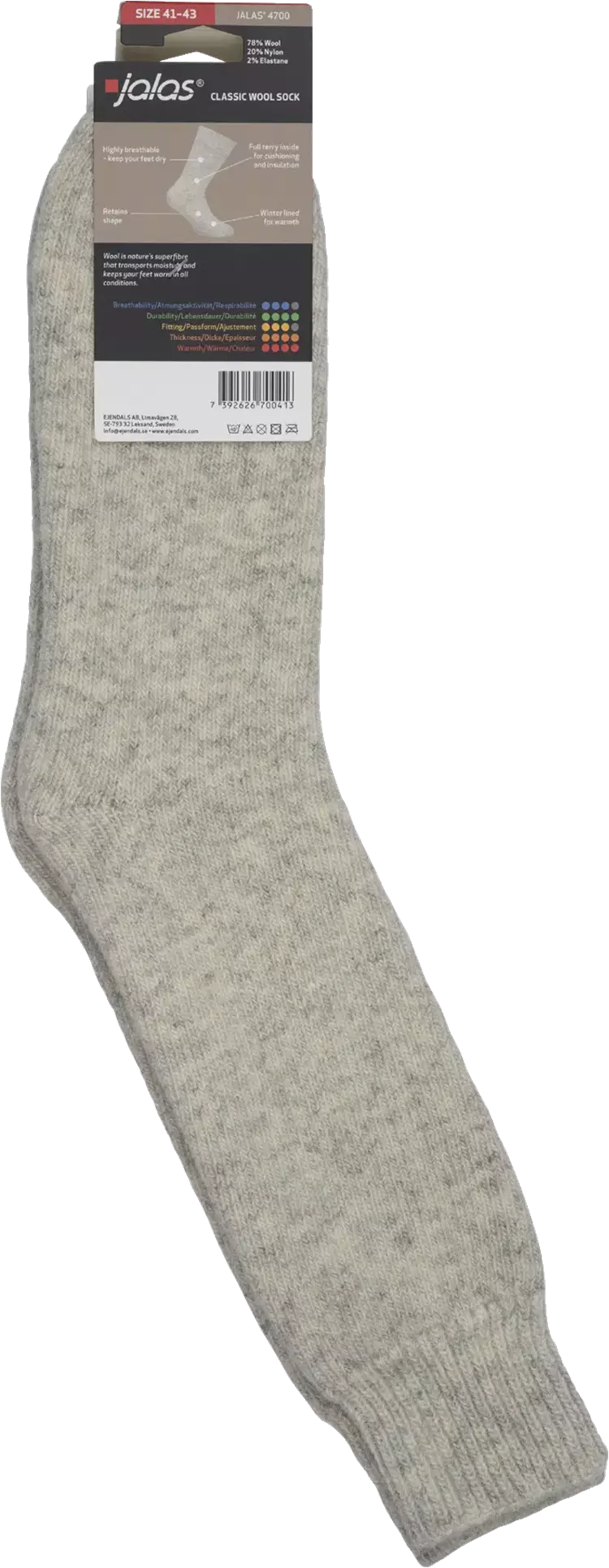 Sokker i norsk kvalitetsull – holder føttene dine varme under alle forhold. Full frotté for demping og isolasjon. Ull blandet med elastan for elastisitet og nylon for slitestyrke. Sokkene beholder formen. Kan vaskes på 40 °C.