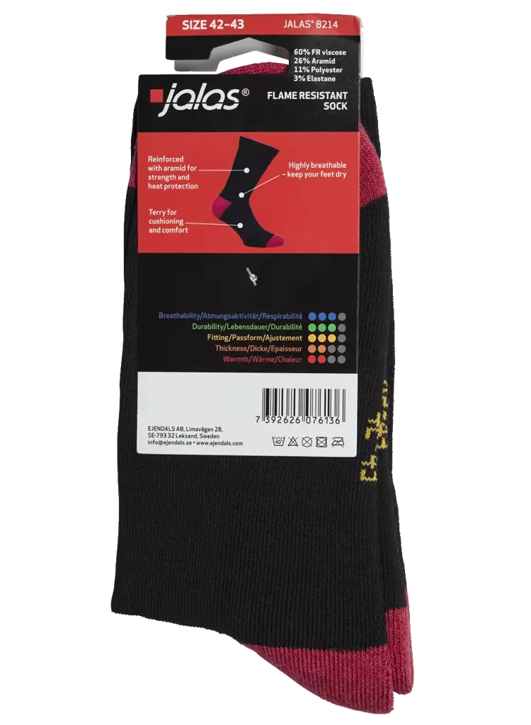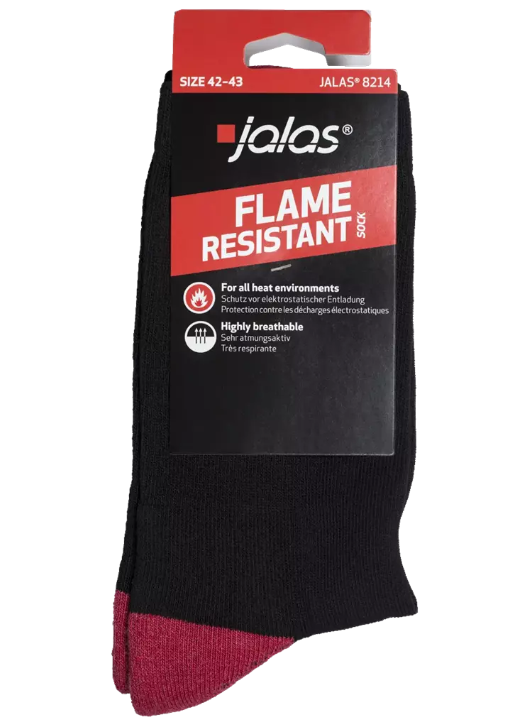 Flammebestandig sokk, for alle varme miljøer. Forsterket med aramid for slitestyrke og varmebeskyttelse. Halvfrotté for demping og komfort. Perfekt som en del av verneutstyret til sveisere. Tåler gnister fra sveise- og slipearbeid. Kan vaskes på 40 °C.